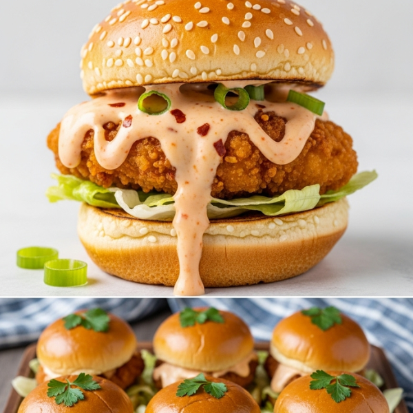 Bang Bang Chicken Sliders are the ultimate combination of crispy fried chicken, soft slider buns, and a creamy, spicy-sweet bang