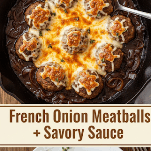 If you’re a fan of rich, savory flavors and melty cheese, these Cheesy French Onion Meatballs are about to become your new favorite comfort food. This recipe brings together two beloved classics—juicy homemade meatballs and the deep, caramelized goodness of French onion soup—all in one bubbling skillet. Topped with a generous layer of gooey melted cheese, this dish is hearty, satisfying, and bursting with bold flavors in every bite.