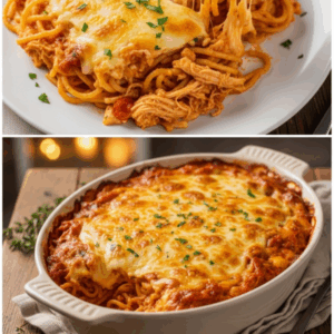 When it comes to hearty comfort food with Southern flair, few dishes can match the richness and flavor of a Cheesy Chicken Spaghetti Bake. This casserole-style recipe brings together tender shredded chicken, creamy cheese sauce, and perfectly cooked spaghetti, all baked until golden and bubbly. It’s warm, comforting, and indulgent—the kind of dish that feels like a big hug in a casserole dish.