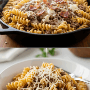 Whether you’re looking for a fun twist on pasta night or a new way to enjoy your favorite burger flavors, this recipe is guaranteed to be a hit. Serve it hot, garnish with extra bacon and cheese, and watch it disappear in minutes!