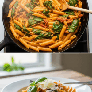 Quick, creamy, and bursting with flavor, this One-Pot Spinach Tomato Pasta is the ultimate comfort food that comes together with minimal effort. Featuring al dente pasta coated in a velvety tomato-based sauce, balanced with fresh spinach leaves and tangy sun-dried tomatoes, this dish proves that simple ingredients can create a restaurant-quality meal at home.